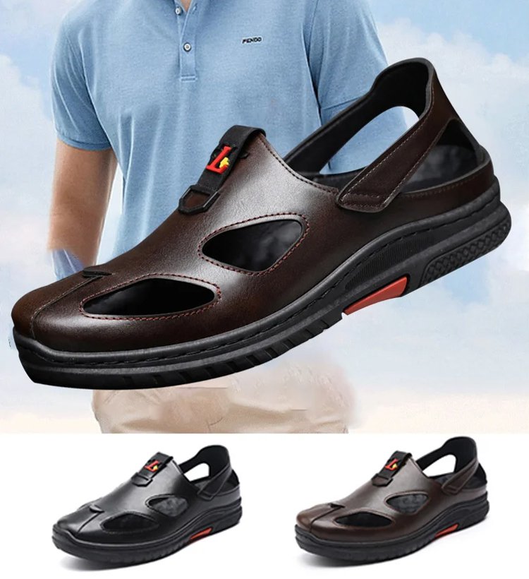 Men's leather hollow sandals